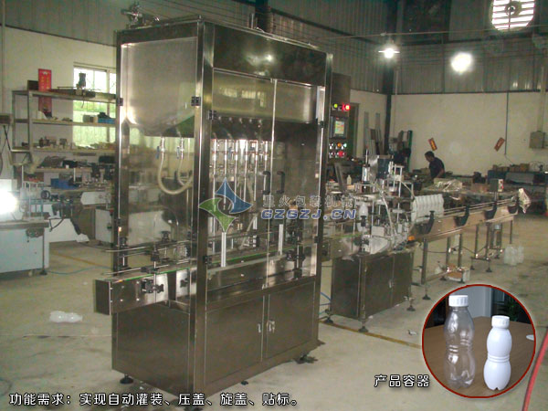 根據(jù)客戶要求的生產(chǎn)需求,我司為其配置全自動(dòng)六頭液體灌裝機(jī),自動(dòng)壓蓋旋蓋機(jī)等設(shè)備