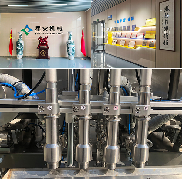 1、采用四頭同步灌裝原理,能夠同時執行四個容器的灌裝工作,提高生產效率,縮減人工成本。