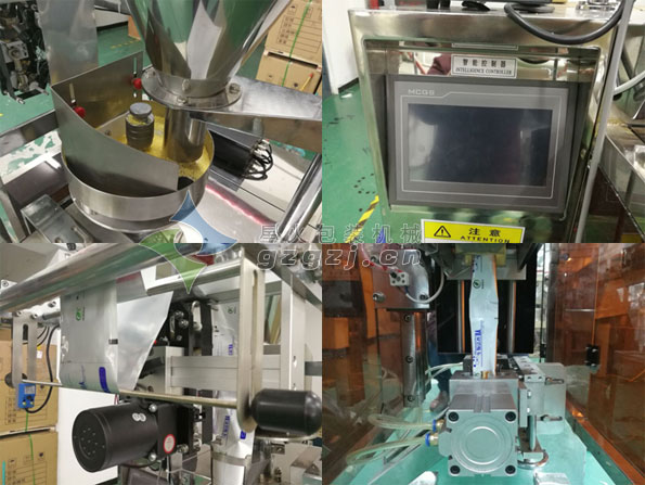 2、本機與計量裝置相配即可完成計量,送料、充填制袋、日期打印、成品輸送的全部包裝過程;