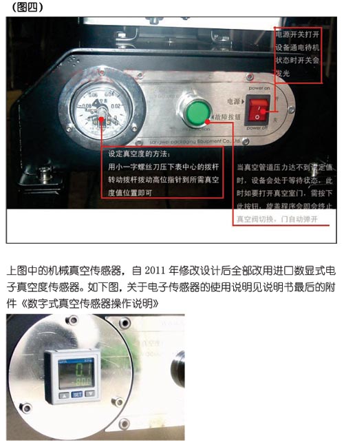 按產品工藝要求在機器面板真空表上設定正確的真空度值 |